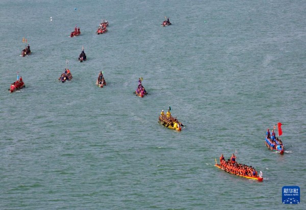 9月24日,在广西融水苗族自治县的融江河面上,龙舟队伍在角逐,喜迎国庆中秋佳节。