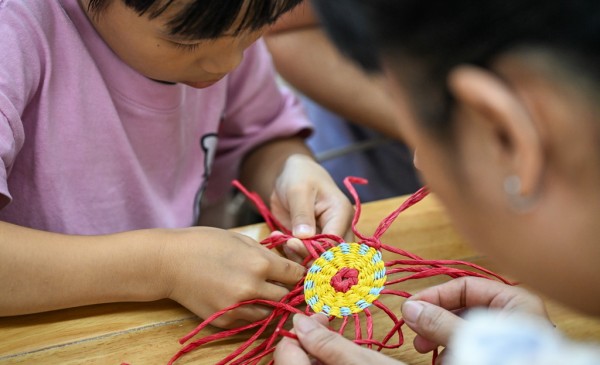 10月12日,不少家庭来到位于海口的海南省文化馆“海文学堂”,在非遗传承人指导下体验东山草编技艺,通过完成传统手工艺作品学习非遗知识、理解文化内涵,在互动中感受传统文化魅力。东山草编技艺是海南省海口市秀英区东山镇的传统手工技艺,入选第六批海南省级非物质文化遗产名录。新华社记者 杨冠宇 摄