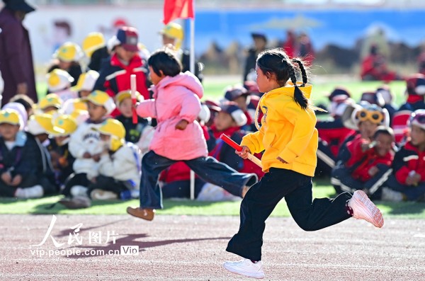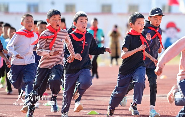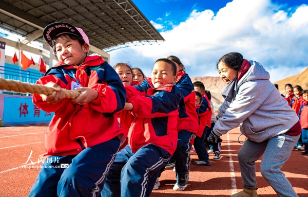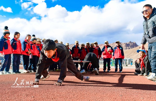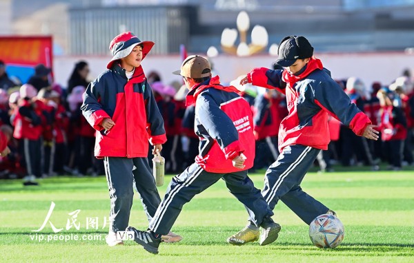 今年以来,西藏阿里陕西实验学校将足球、赛跑、押加、锅庄舞等多项学生喜闻乐见、简便易行的体育项目和趣味运动纳入课间15分钟和大课间活动中,助力学生健康成长。王正摄(人民图片网)