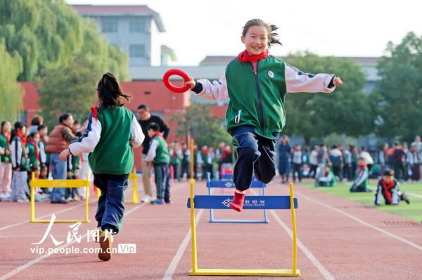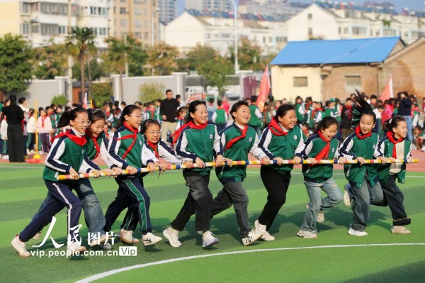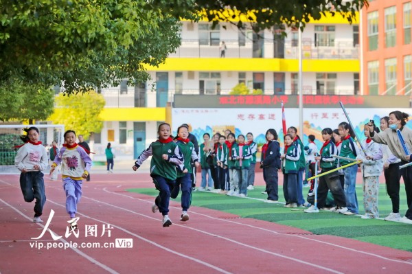 近年来,安徽省淮北市濉溪路小学以举办体育特色活动为抓手,积极探索体育育人新路径,大力实施阳光体育运动,推动体育教育教学科学化、多样化、趣味化,让学生在体育锻炼中享受乐趣、增强体质。万善朝摄(人民图片网)
