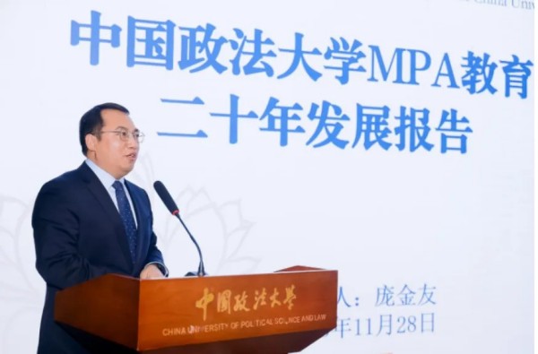 中国政法大学政治与公共管理学院院长兼MPA教育中心主任庞金友教授作《法大MPA教育二十年发展报告》。报告系统回顾了法大公共管理学科自1986年成立以来的发展历程,全面介绍了MPA教育建设情况,重点阐述了学院MPA教育在培养目标定位、课程体系构建、师资队伍建设等方面形成的“法、政、管”融合的办学特色。庞金友教授强调,中国政法大学MPA教育将充分发挥法政特色优势,持续创新人才培养模式,深化国际交流合作,紧密围绕中国式现代化建设目标,将国家重大战略思想有机融入教学全过程,立足中国大地,聚焦中国问题,讲好中国故事。