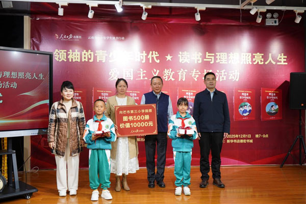 分享结束后,沈清、李凯和云南新华书店集团党委副书记黄锦明,向芒市第三小学赠送“传承红色基因 培养时代新人”丛书,鼓励同学们多读书、读好书。