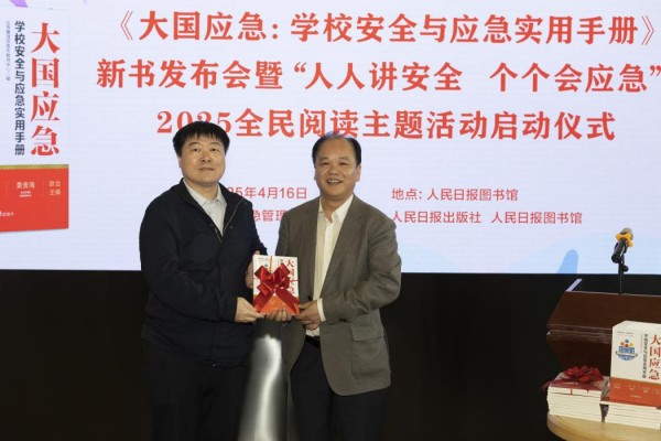 2025年4月16日,《大国应急:学校安全与应急实用手册》新书发布会暨“人人讲安全 个个会应急”2025全民阅读主题活动启动仪式在人民日报社图书馆举办。